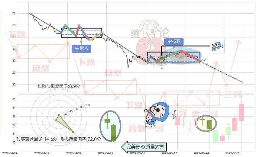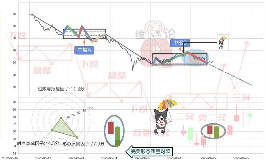 ➢ 下跌螺旋桨 🔜 缠论中枢点破位中枢B支撑下拉 综合量化分数:46.53 【中性】