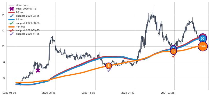 ➣ 90小时均线于(2021-06-04: 11.65)形成【死叉】基于【死叉历史模型】预测死叉后最低波谷价格: 10.61, 死叉后最低价格2.920,已经下跌超出预测最低波谷价格, 预期反弹