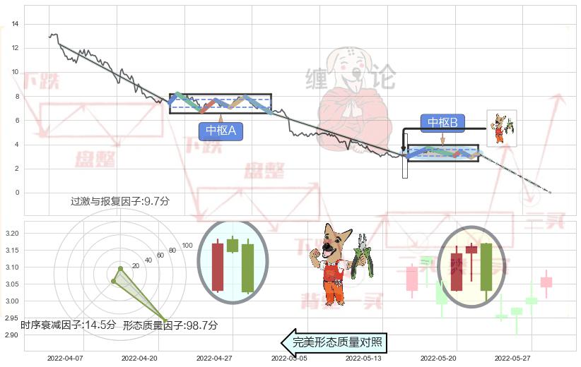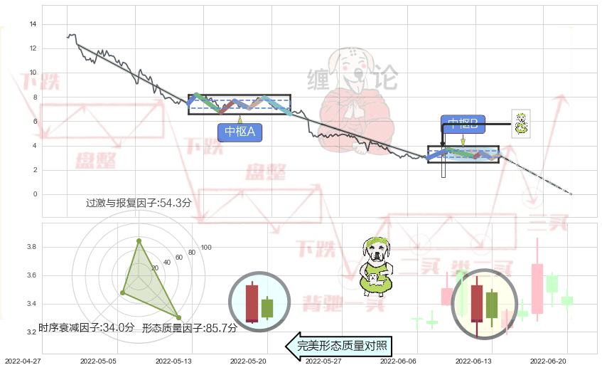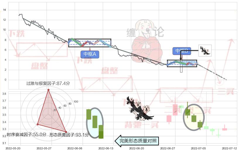 ➣ 缠论中枢点:猜想破位中枢B后持续下拉 → 下跌 → 破位中枢B支撑 → 持续趋势跟踪