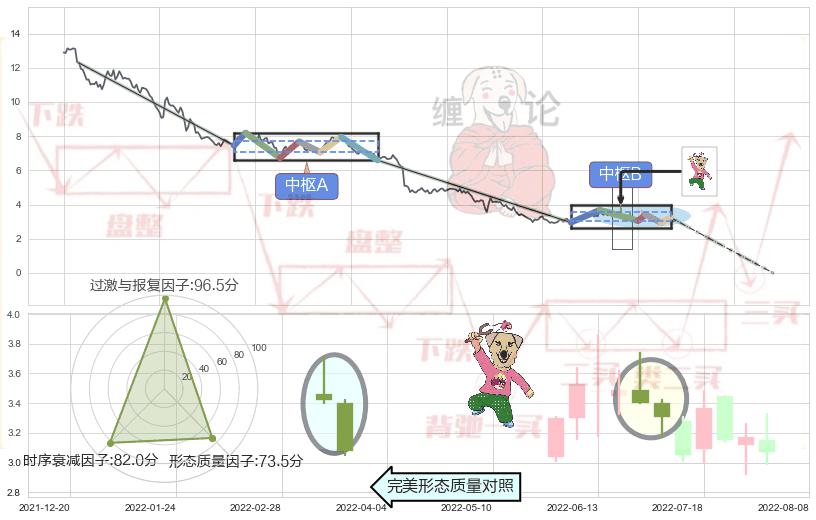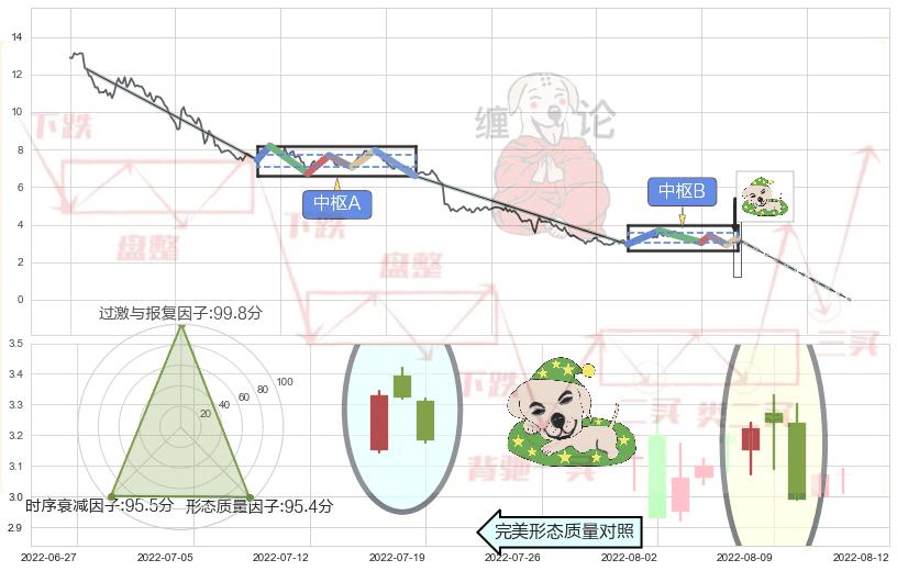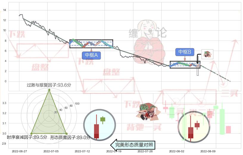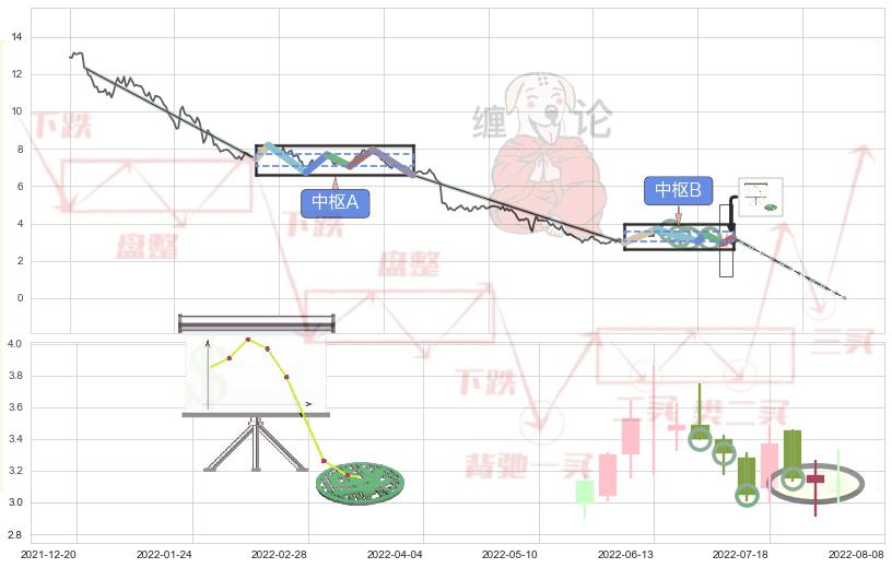 ➢ 【中枢B】:2022-05-25-2022-08-09,中枢由6笔构成,共53交易日, ZG=3.240, ZD=3.050