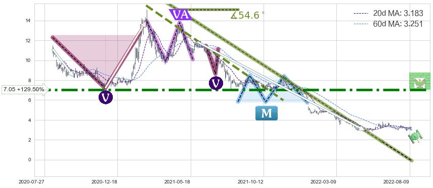 ♘ 阻力价格位7.05,可信任强度92.38%,距离最后交易2022-08-12形成的收盘价格3.070相差 +129.50%