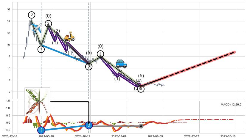 ➣ 波浪理论:猜想止跌 → 上涨 →【拐点】浪5已完成 → 大趋势均值回复