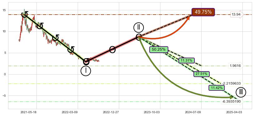 ➢ AI预测: 假定反转如期而至,第❸价格目标位置(2023-03-30, 13.94)
