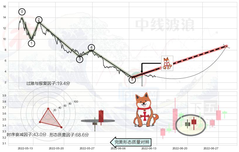 ➣ 曙光初现形态 + 波浪理论下跌浪:浪5反弹拐点信号叠加后【反向回撤率】偏高,【看多】信号叠加【存续影响降权】