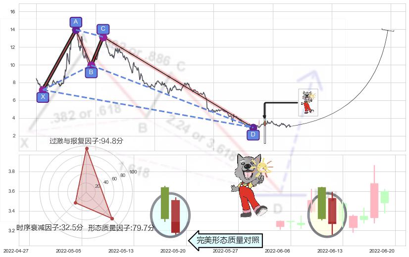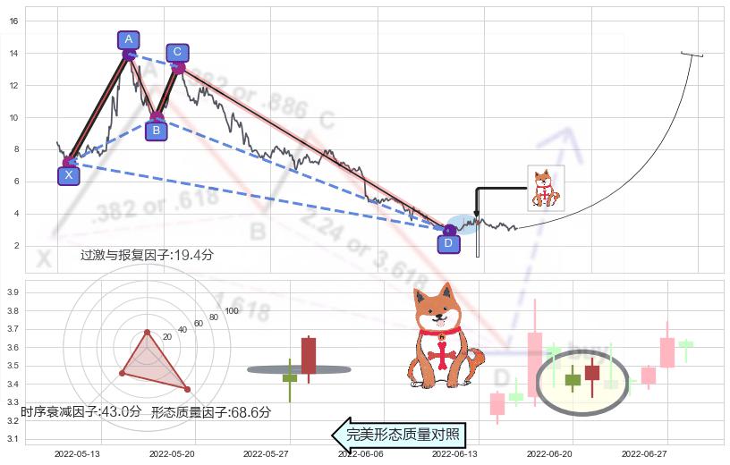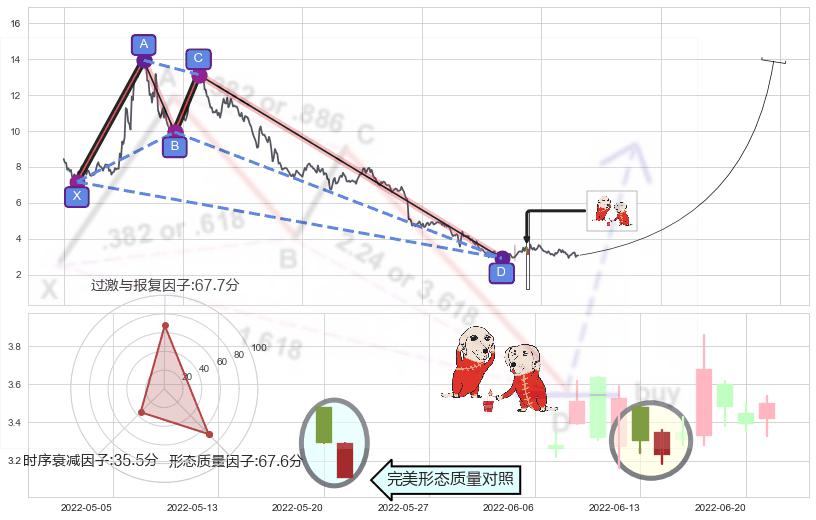 ➢ 谐波螃蟹d拐点上涨支撑 🔜 波浪理论下跌浪:浪5反弹拐点 综合量化分数:58.50 【偏多】