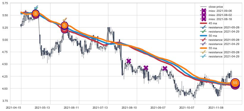 📝 多条均线形成死叉后走势最低价格达到: 2.330
