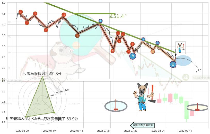 ♘ 阻力价格位4.14,可信任强度98.15%,距离最后交易2022-08-12形成的收盘价格2.430相差 +70.24%