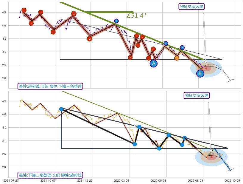 ♘ 在最后的下跌阶段2021-08-04至2022-08-12,存在 持续未破位的阻力位 ,阻力价格2.700,可信任强度88.80%,其距离最后价格2.430相差 +11.10%