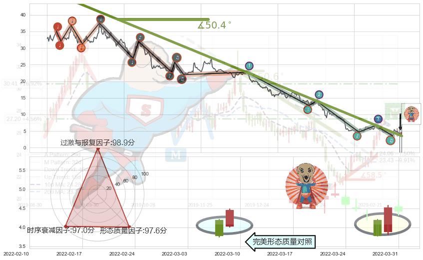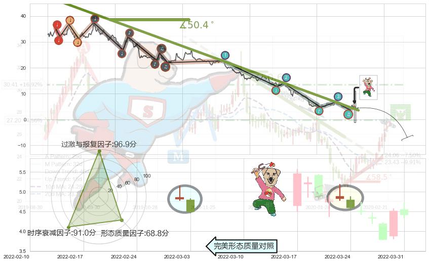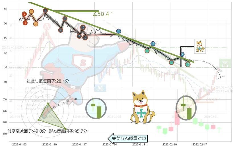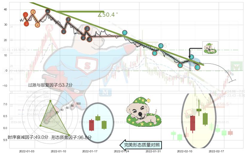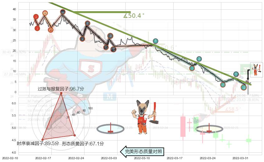 ➢ 看涨(低位)倒锤头线 🔜 趋势线下跌趋势面临突破上涨 综合量化分数:50.21 【中性】