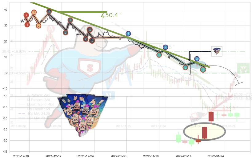 ➢ 🕰 价格走势在2022-01-24至2022-01-24期间形成看跌(高位倒锤头)流星线,残存影响值:-2.37