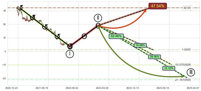 ➢ 循环浪继续向下【最低】位置(2025-04-07, -21.1610503),匹配聚类样本比例23.10%, 可能性概率12.12%
