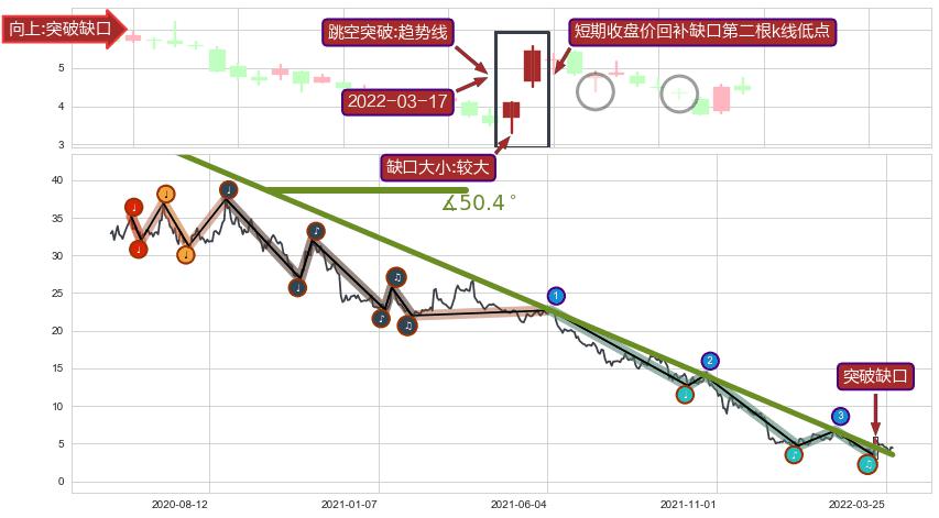 ➣ 2022-03-28再次回踩幅度超过2022-03-22, 缺口可信度降低