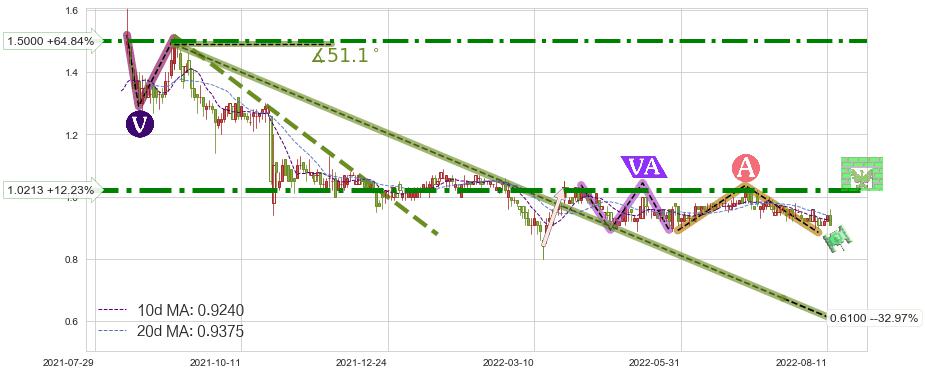 ➣ 2021-09-06-2022-07-21下跌趋势存在反转上涨[机会],其原下跌趋势的阻力位(0.6100)已被突破[强支撑信号],原下跌趋势角度: 51.1˚