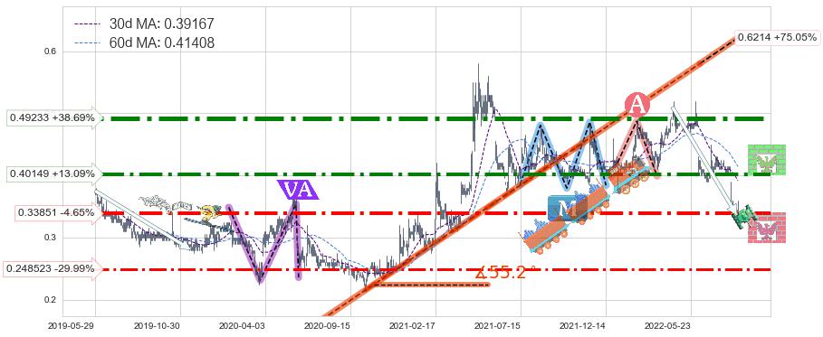 ♘ 阻力价格位0.49233,可信任强度92.73%,距离最后交易2022-08-12形成的收盘价格0.35500相差 +38.69%