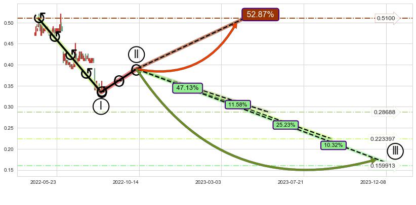 ➢ 循环浪继续向下【最高】位置(2023-05-24, 0.28688),匹配聚类样本比例24.56%, 可能性概率11.58%