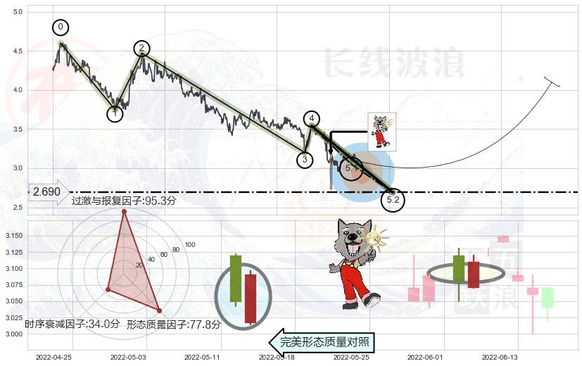 ➢ 锤头线(锤子线) 🔜 波浪理论下跌浪临近浪5反弹点 综合量化分数:52.19 【中性】