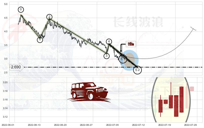 ➢ 5.1: 预测当前第5浪位置(2022-08-03, 3.050),仍然有下跌空间