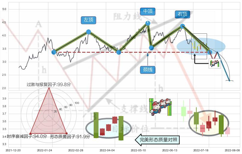 ➢ 🕰 价格走势在2022-07-04至2022-08-01期间形成下降三部曲(降势三鹤),残存影响值:-8.36