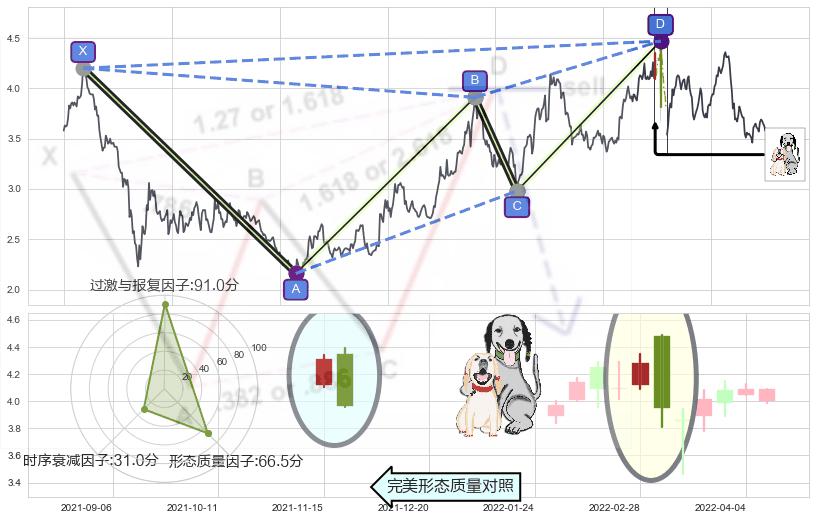 ➢ 谐波蝴蝶:已到达d点:猜想c拉升到达d点后泄力性下沉下跌(均值回复)
