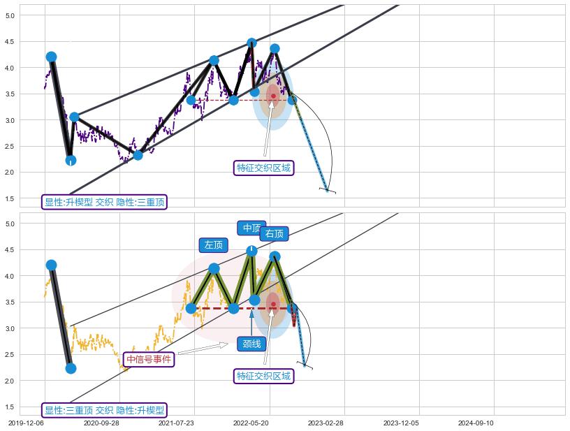 ➢ 三重顶属【中级别信号事件】升楔型属【长级别信号事件】中长周期组合信号事件,中长事件长度比59.04%