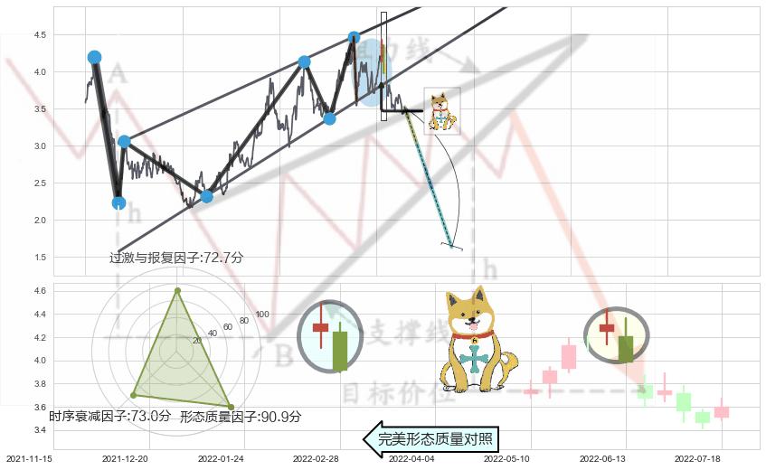♘ 支撑价格位3.076,可信任强度61.96%,距离最后交易2022-08-12形成的收盘价格3.520相差 -12.61%