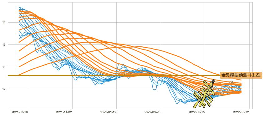 ➢ 13小时均线于(2022-06-14: 11.11)形成【金叉】基于【金叉历史模型】预测金叉后最高波峰价格: 12.19, 金叉后最高价格12.90,已经上涨超出预测最高波峰价格, 预期回调