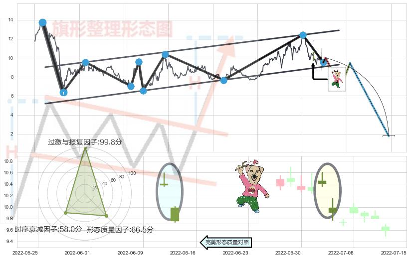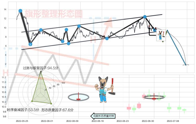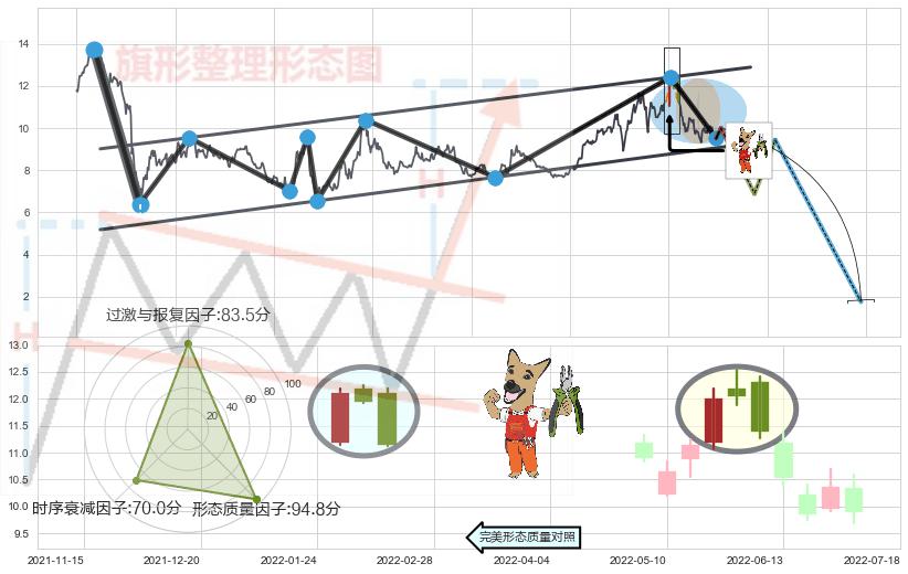 ➣ 射击之星形态 + 升旗形临近支撑猜想转换阻力下跌信号叠加后【目标达成率】中等,【看空】信号叠加【存续影响中等】