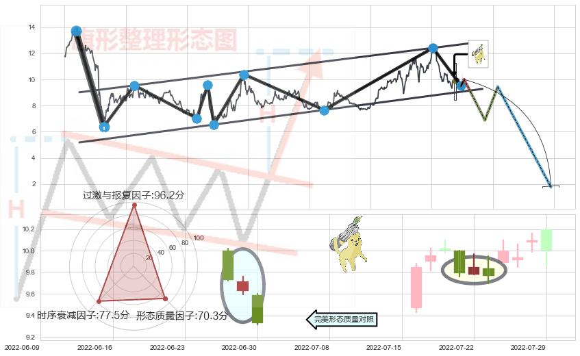 ♘ 支撑价格位9.36,可信任强度91.40%,距离最后交易2022-08-12形成的收盘价格10.00相差 -6.39%