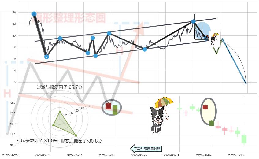 ➢ 🕰 价格走势在2022-05-23至2022-06-06期间形成下跌镊子线(n形磁铁),残存影响值:-2.81