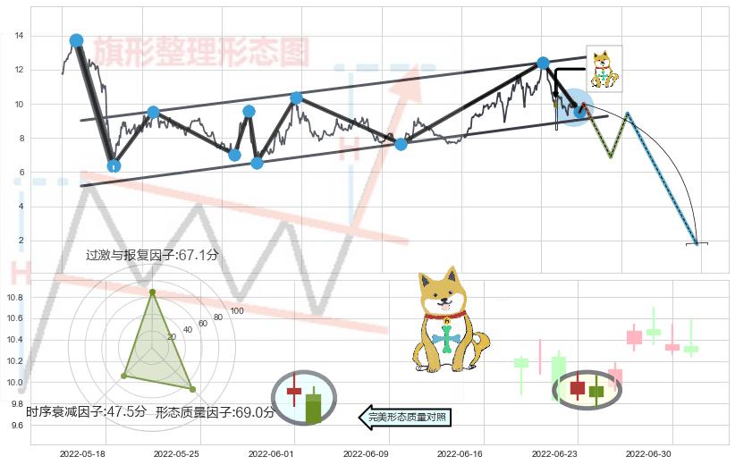 ➢ 射击之星形态 🔜 升旗形临近支撑猜想转换阻力下跌 综合量化分数:42.75 【偏空】