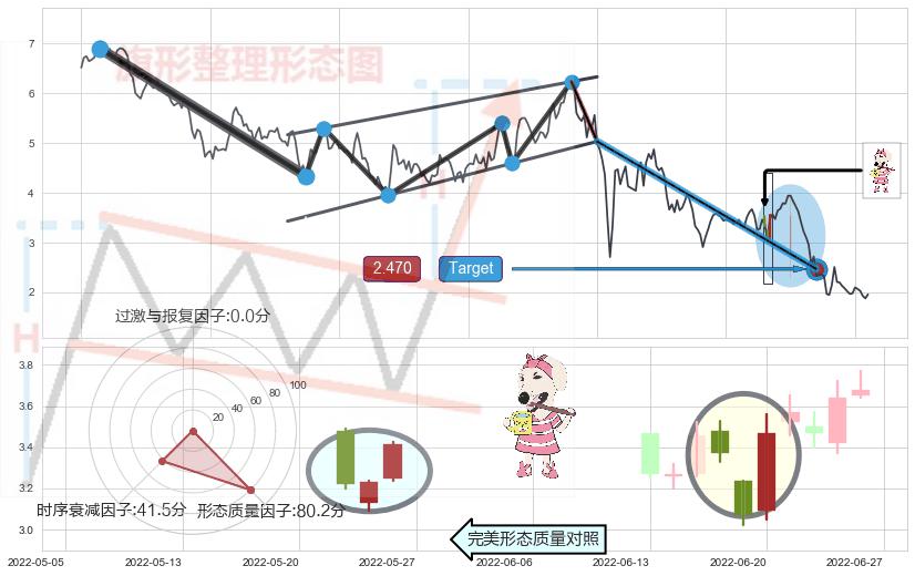 ➣ 高点影线(2022-06-16: 3.530 )→回踩→第二根k线高点(2022-06-13: 3.470 )