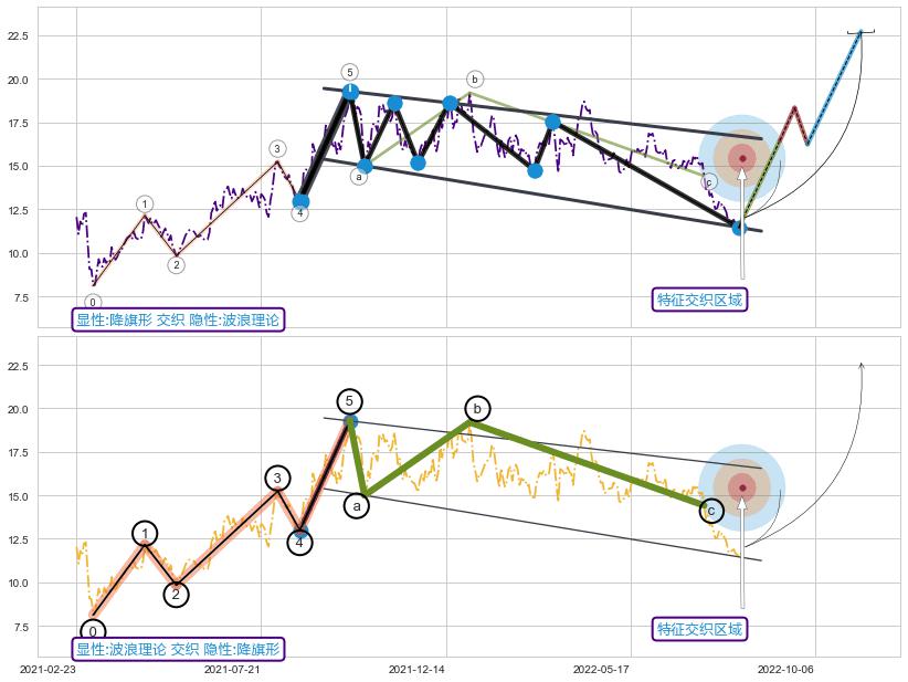 ➣ 波浪理论:猜想达到c点后小回调终止反转上涨 → 上涨 → 【拐点】临近 → 阶段均值回复结束后继续大周期趋势跟踪