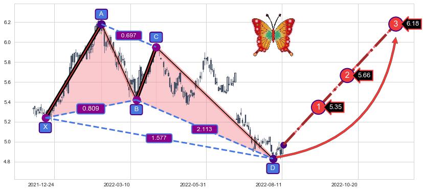 ➣ 已完成【蝴蝶】形态起点X: 2021-12-16, 终点D: 2022-08-03, 共151交易日
