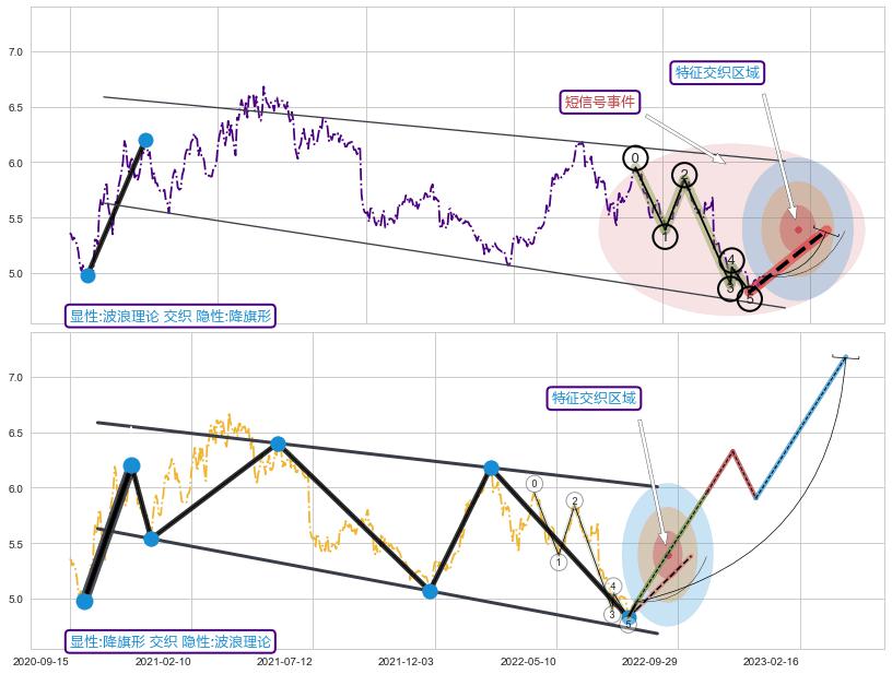 ➢ 波浪理论属【短级别信号事件】降旗形属【长级别信号事件】长短周期组合信号事件, 短长事件长度比18.68%