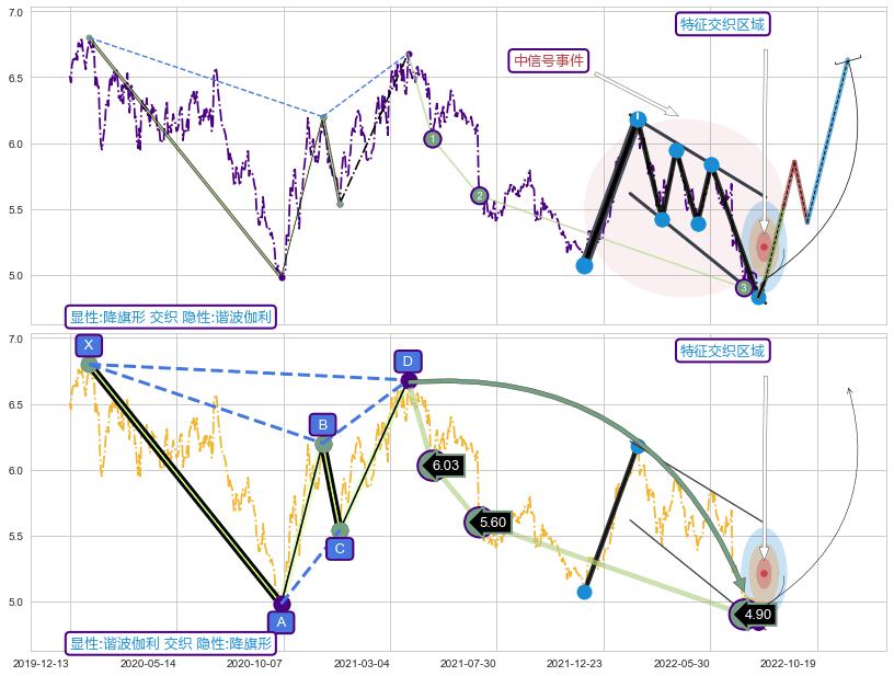➢ 降旗形属【中级别信号事件】谐波伽利属【长级别信号事件】中长周期组合信号事件,中长事件长度比57.00%