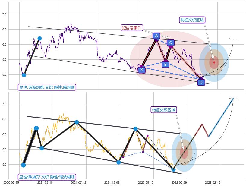➢ 谐波蝴蝶属【短级别信号事件】降旗形属【长级别信号事件】长短周期组合信号事件, 短长事件长度比33.19%