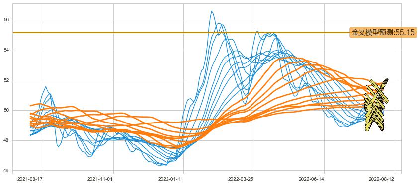 ➣ 70小时均线于(2022-08-03: 50.33)形成【金叉】基于【金叉历史模型】预测金叉后最高波峰价格: 55.97, 金叉后最高价格52.50,尚未达到预测最高波峰价格, 预期继续上涨