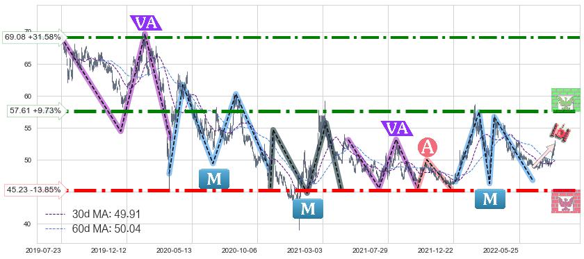 ♘ 阻力价格位57.61,可信任强度95.30%,距离最后交易2022-08-12形成的收盘价格52.50相差 +9.73%