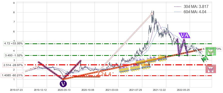♘ 阻力价格位4.72,可信任强度66.21%,距离最后交易2022-08-12形成的收盘价格3.540相差 +33.35%