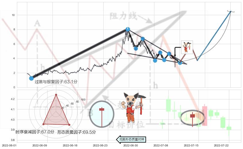 ➢ 🕰 价格走势在2022-07-14至2022-07-14期间形成锤头线(锤子线),残存影响值:5.31