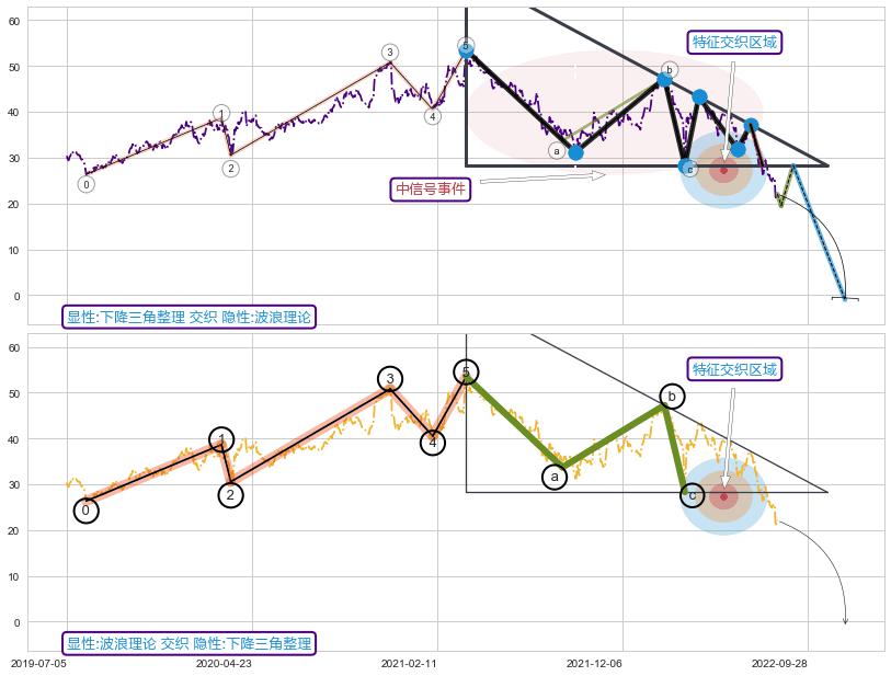 ➢ 下降三角整理属【中级别信号事件】波浪理论属【长级别信号事件】中长周期组合信号事件,中长事件长度比49.61%