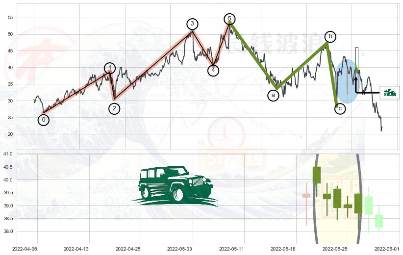 ➣ 波浪理论:猜想击穿破位c点后继续下跌 → 下跌 → 风险信号 → 小趋势跟踪