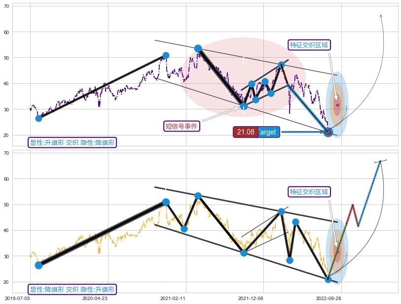 ➣ D点拟合预测价格13.43,距离最后交易收盘价格22.05相差 -39.08%