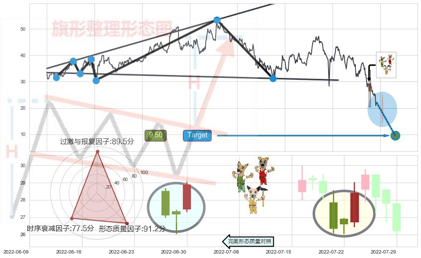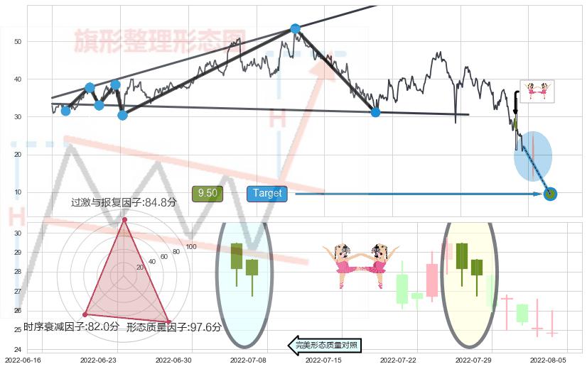 ➢ 升旗形:下跌目标target已达成:猜想强支撑位临近,预期反弹上涨(均值回复)