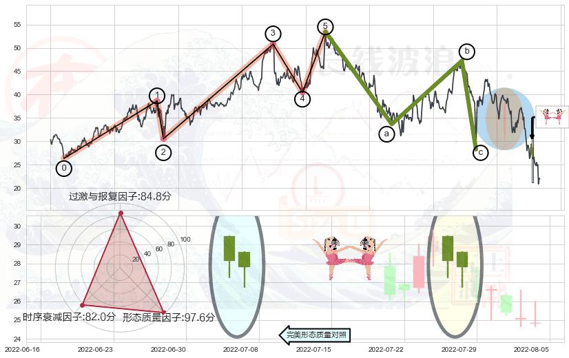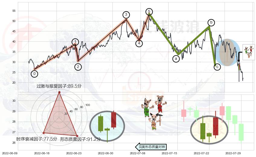 ➢ 黄昏之星(夜星) 🔜 波浪理论击穿破位C点继续下跌 综合量化分数:47.11 【中性】
