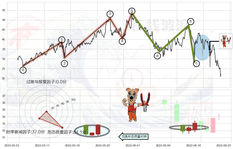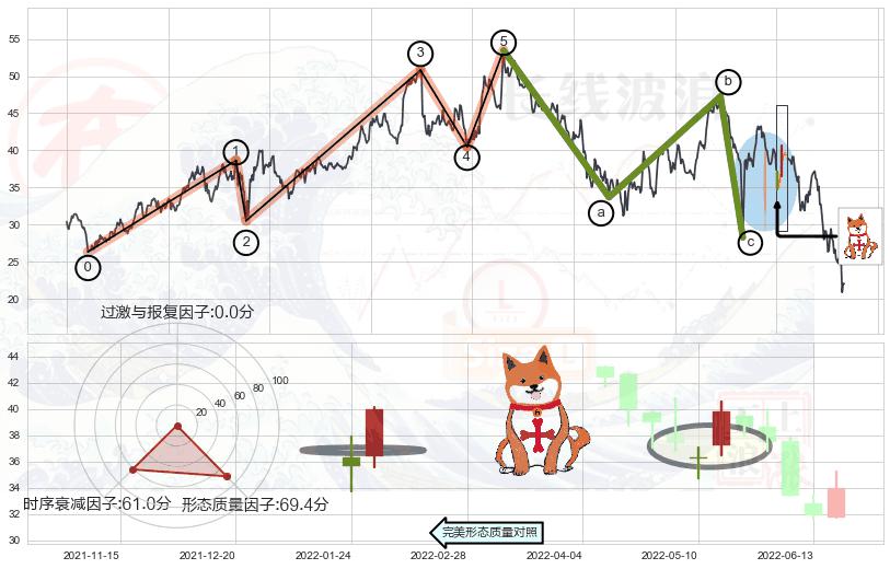 ➢ 下跌镊子线(n形磁铁) 🔜 波浪理论击穿破位C点继续下跌 综合量化分数:46.63 【中性】