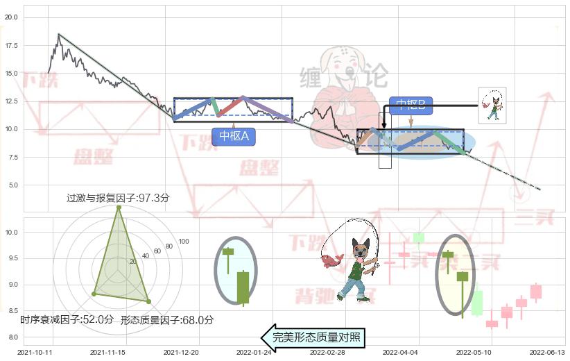 ➢ 趋势线临近恢复下跌趋势 🔜 缠论中枢点破位中枢B支撑下拉 综合量化分数:46.70 【中性】