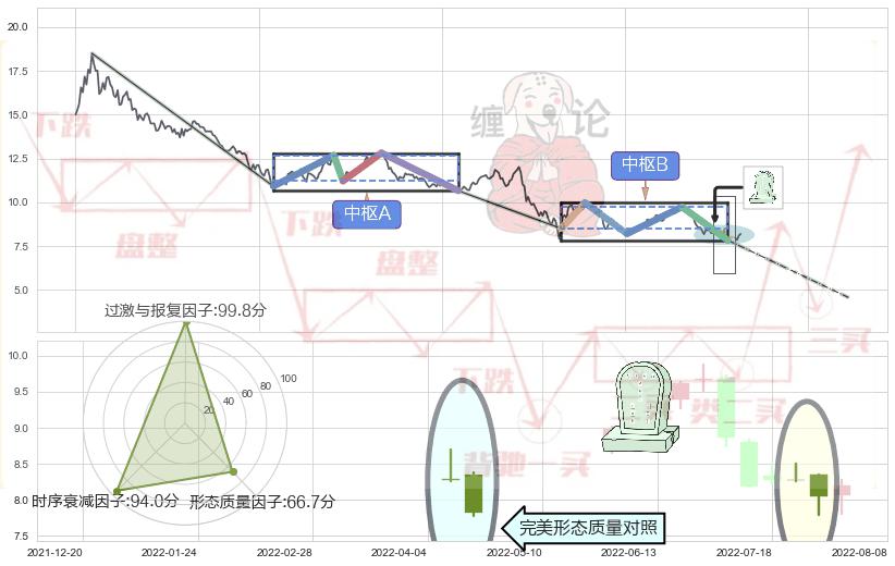 ➢ 【中枢B】:2022-03-16-2022-08-03,中枢由5笔构成,共92交易日, ZG=9.74, ZD=8.51