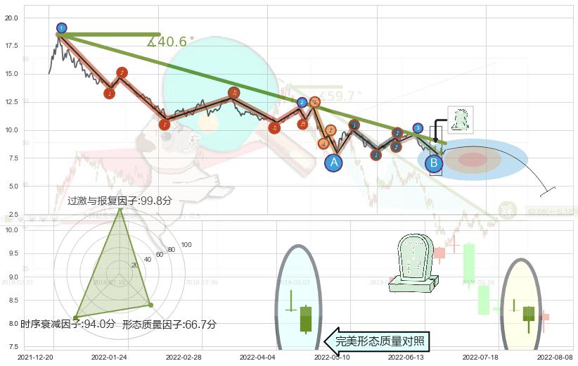 从2021-03-03至2022-08-12,共包含355个交易日,阶段股价下跌-73.61%,阶段股价变动位移路程比: 1 : 7,下跌趋势角度: 40.6