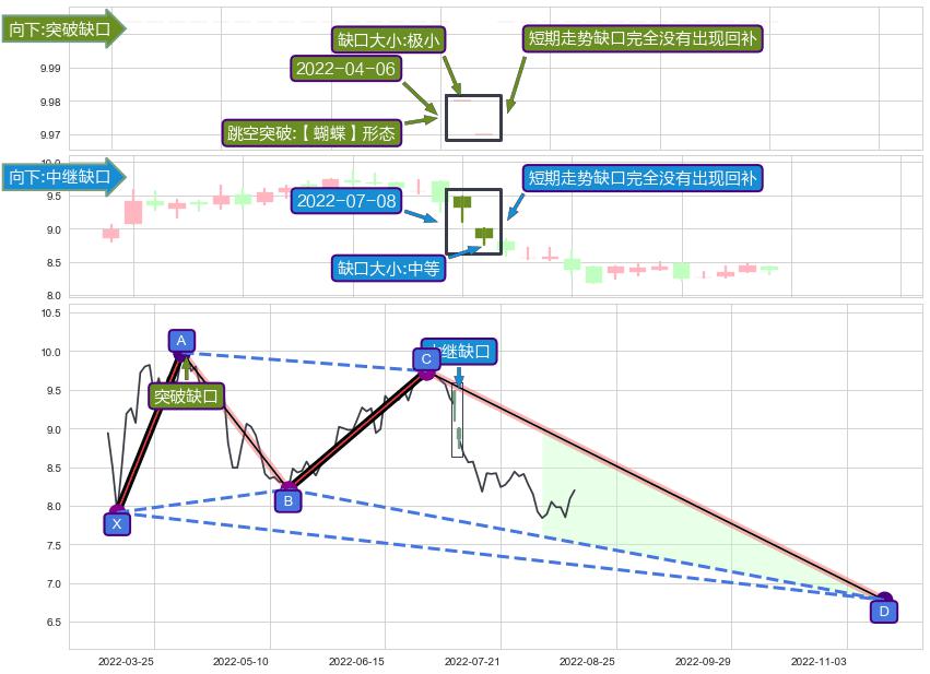 ➢ 【蝴蝶】形态 🔜 中继缺口 🔜 突破缺口 综合量化分数:40.72 【偏空】